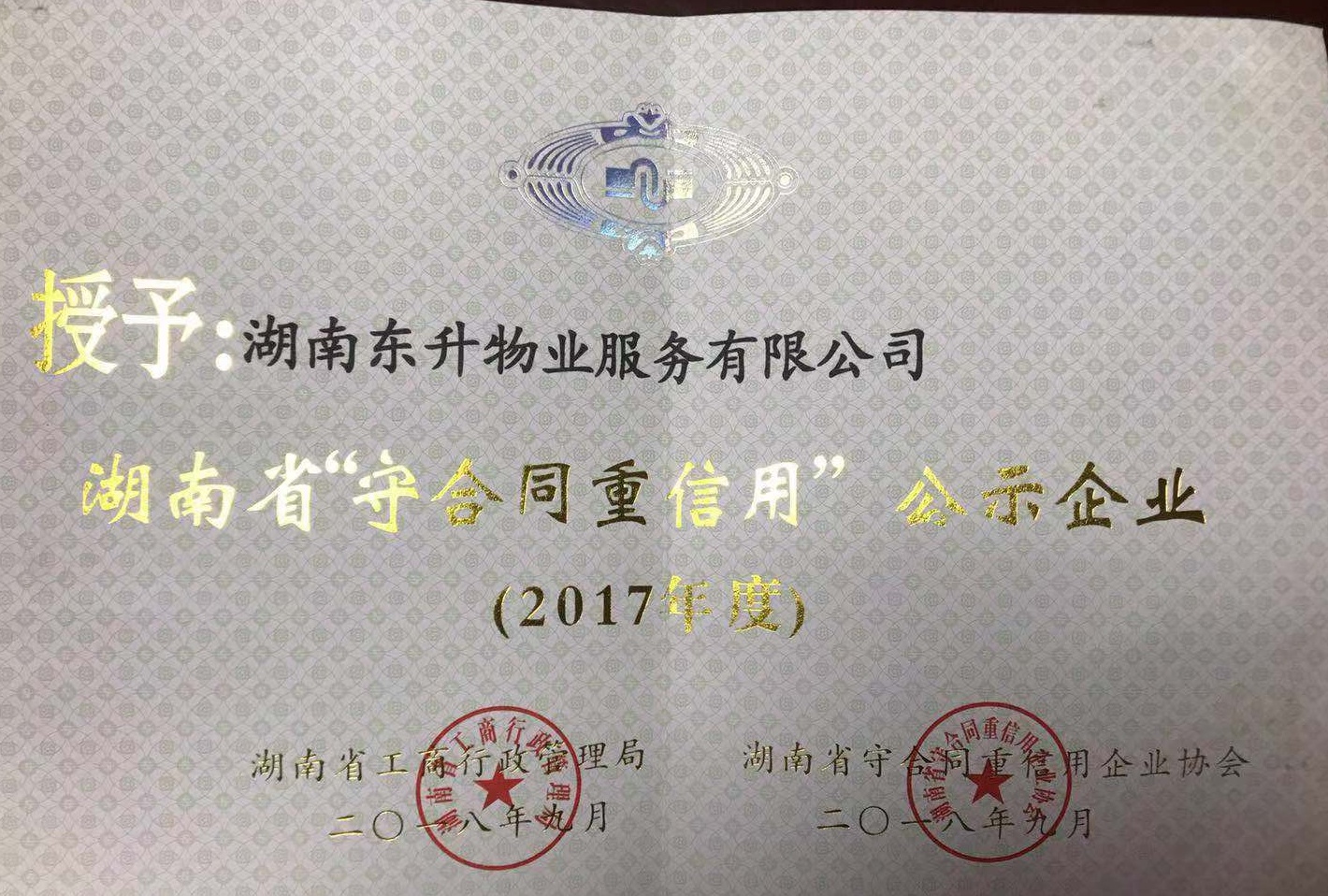 2018年湖南省守合同重信用企業(yè)